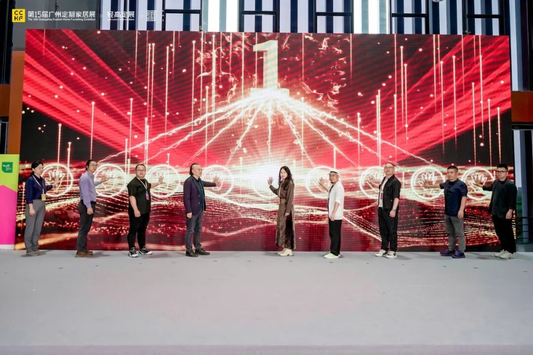 广州定制家居展暨轻高定展副总经理 王晓文、首席学术顾问 李泰山、学术委员会副主席 富察振辉、蒋立、陈兆勤、刘楚荣、郭彦毅,俱乐部秘书长 宋唐、副秘书长 季晴等9位嘉宾共同登台,在现场所有嘉宾的共同倒数中,正式启动轻高定设计师俱乐部(大湾区)。