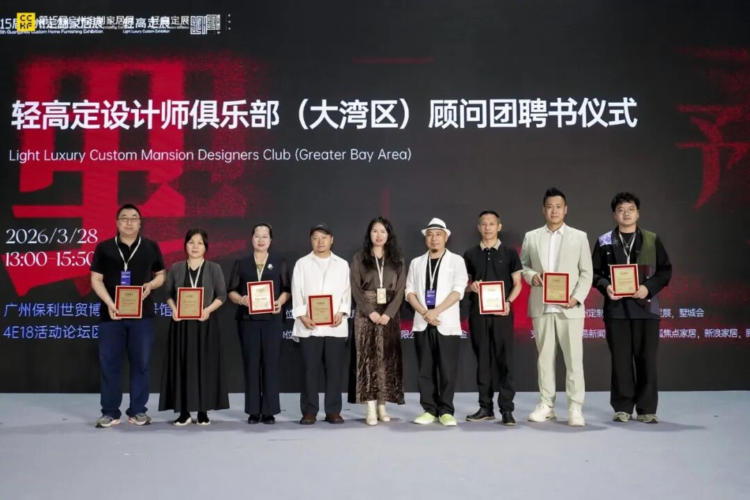 当轻高定成为高端人居设计的主流风向,当粤港澳大湾区成为设计创新与产业融合的核心沃土,一场属于墅居大宅设计领域的行业盛会在羊城广州璀璨启幕。2026年3月28日,依托第15届广州定制家居展暨轻高定展的行业盛势,2026粤港澳大湾区别墅大宅设计师峰会暨轻高定设计师俱乐部(大湾区)成立盛典在广州保利世贸博览馆四号馆活动论坛区圆满举办。